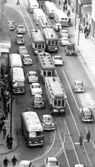 archives stm Vu du haut des buildings, la rue, pleine de messieurs en complets foncés, chemises blanches et cravate serrée autour du col, faisait penser à un immense nid de fourmis. Cette activité trépidante ne ressemblait en rien au rythme de vie que nous connaissions de nos quartiers ouvriers.