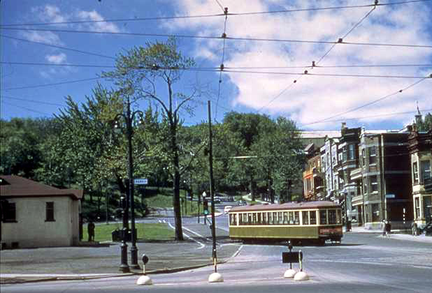 Les jours de pénurie, le premier qui en trouvait un montait dans le tramway et jetait son "transfert" par la fenêtre après l'avoir présenté au percepteur de billets. Le ti-cul qui le récupérait répétait la manœuvre en montant dans le tramway suivant jusqu'à ce que le dernier d'entre nous soit parvenu à monter dans un p'tit char. Ce jour-là, pour suver du temps, nous nous sommes séparés en deux groupes partant de deux intersections différentes, en nous donnant rendez-vous au pied de la montagne vers 10 heures.