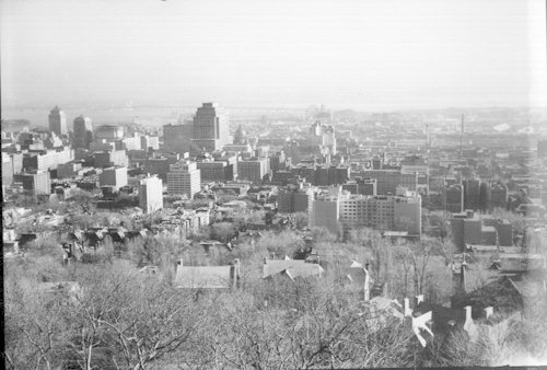 Après avoir échangé notre dernier journal, nous nous sommes retrouvés au "point de vue" du Chalet du Mont-Royal, au pied du parapet qui longe le précipice. De là, nous avons suivi un petit sentier, que nous avions découvert l'année précédente, jusqu'à une petite corniche d'où la vue sur la ville était magnifique.